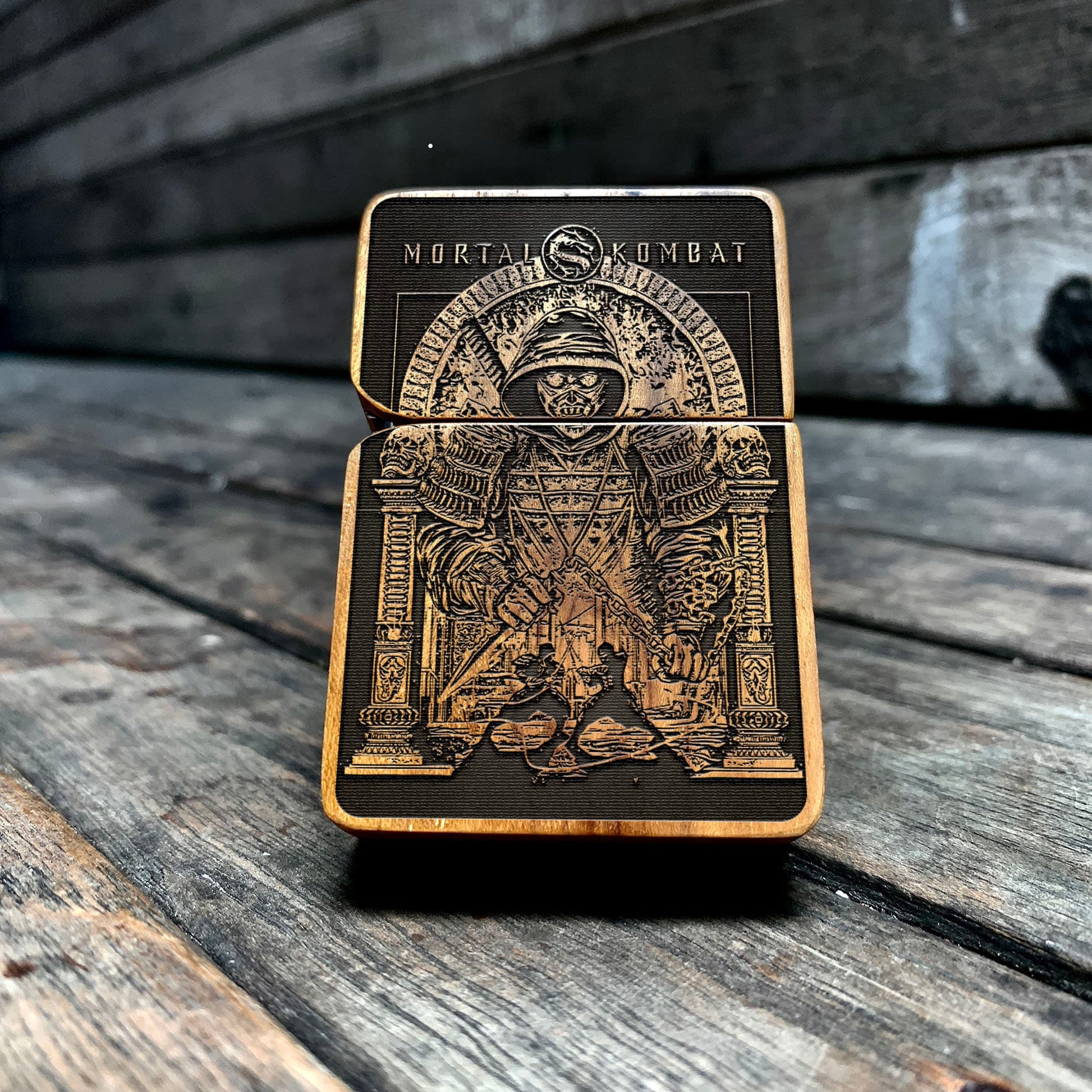 Scorpion Mortal Kombat Engraved Wooden Lighters, Personalized Birthday Gift for Father, Husband or Boyfriend